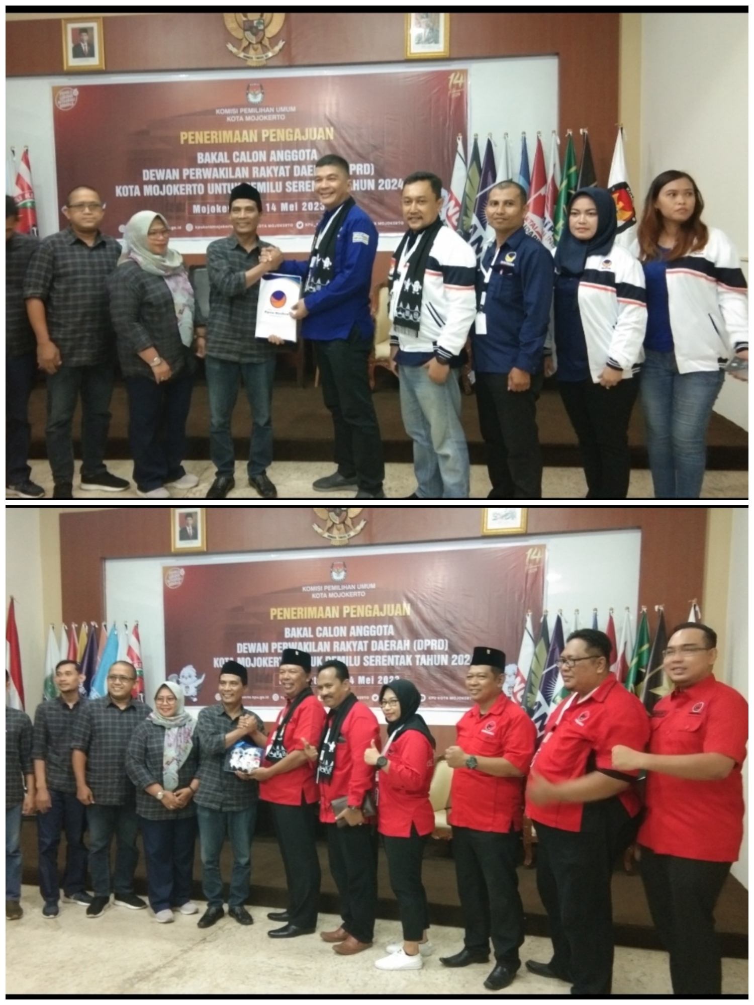 Tagarterkini.com, Mojokerto — KPU Kota Mojokerto menerima dua berkas pengajuan bakal calon legislatif (Bacaleg) dari dua Partai Politik (parpol) yakni PDI Perjuangan dan Partai Nasdem, Kamis (11/5/2023).