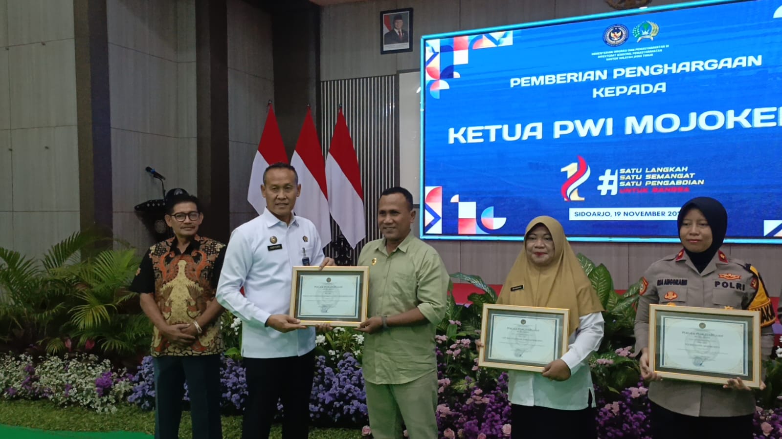 Tagarterkini.com, SIDOARJO — Prestasi gemilang diraih oleh Persatuan Wartawan Indonesia (PWI) Mojokerto Raya. Organisasi kewartawanan ini menerima penghargaan dari Kantor Wilayah Direktorat Jenderal Pemasyarakatan (Ditjen PAS) Jawa Timur atas kontribusi dan kerja sama dalam publikasi serta pengawasan terhadap kinerja Lembaga Pemasyarakatan Kelas IIB Mojokerto.
