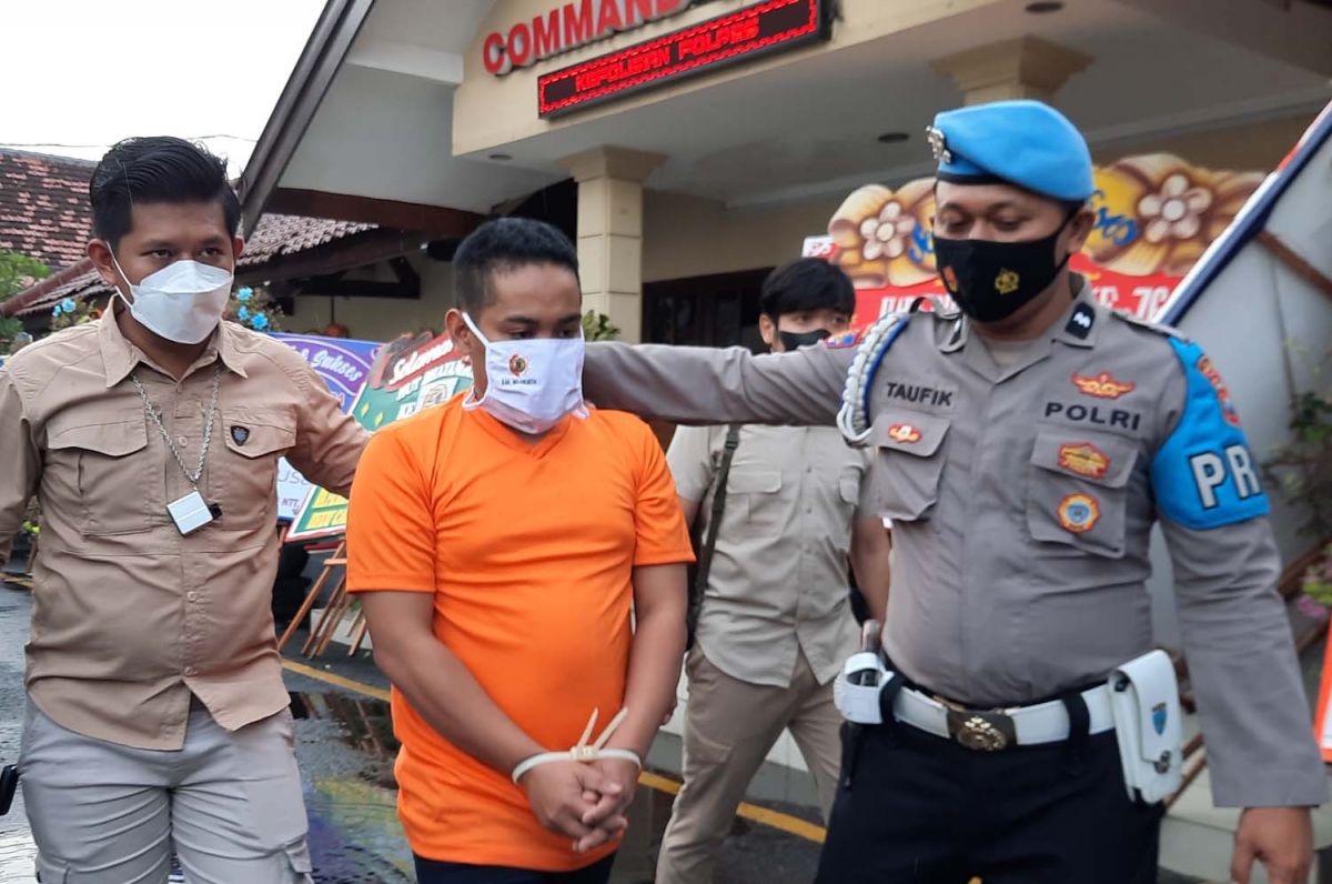 Foto: pelaku saat rilis kasus di polres mojokerto kota
