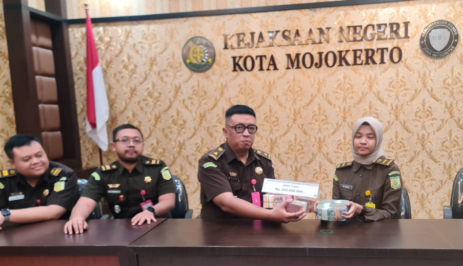 Tagarterkini.com, Mojokerto – Uang sebesar Rp 200 juta diserahkan ke kas negara melalui rekening titipan Kejaksaan Negeri Kota Mojokerto sebagai uang kerugian negara kasus korupsi Bank Pembiayaan Rakyat Syariah (BPRS) Kota Mojokerto, Selasa (18/2/2025).