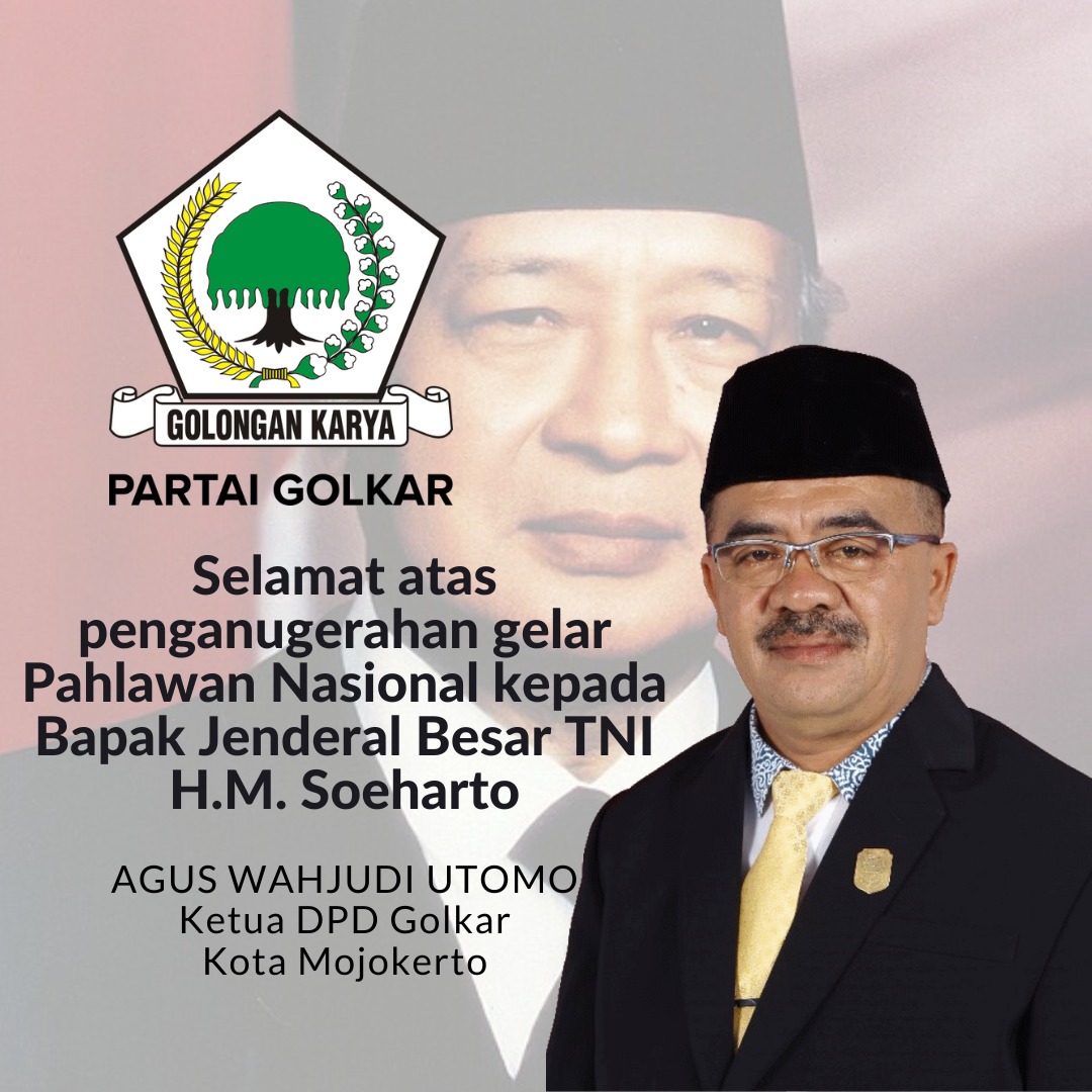 Ketua DPD Golkar Kota Mojokerto Ucapkan Selamat atas Penganugerahan Gelar Pahlawan Nasional kepada H.M. Soeharto