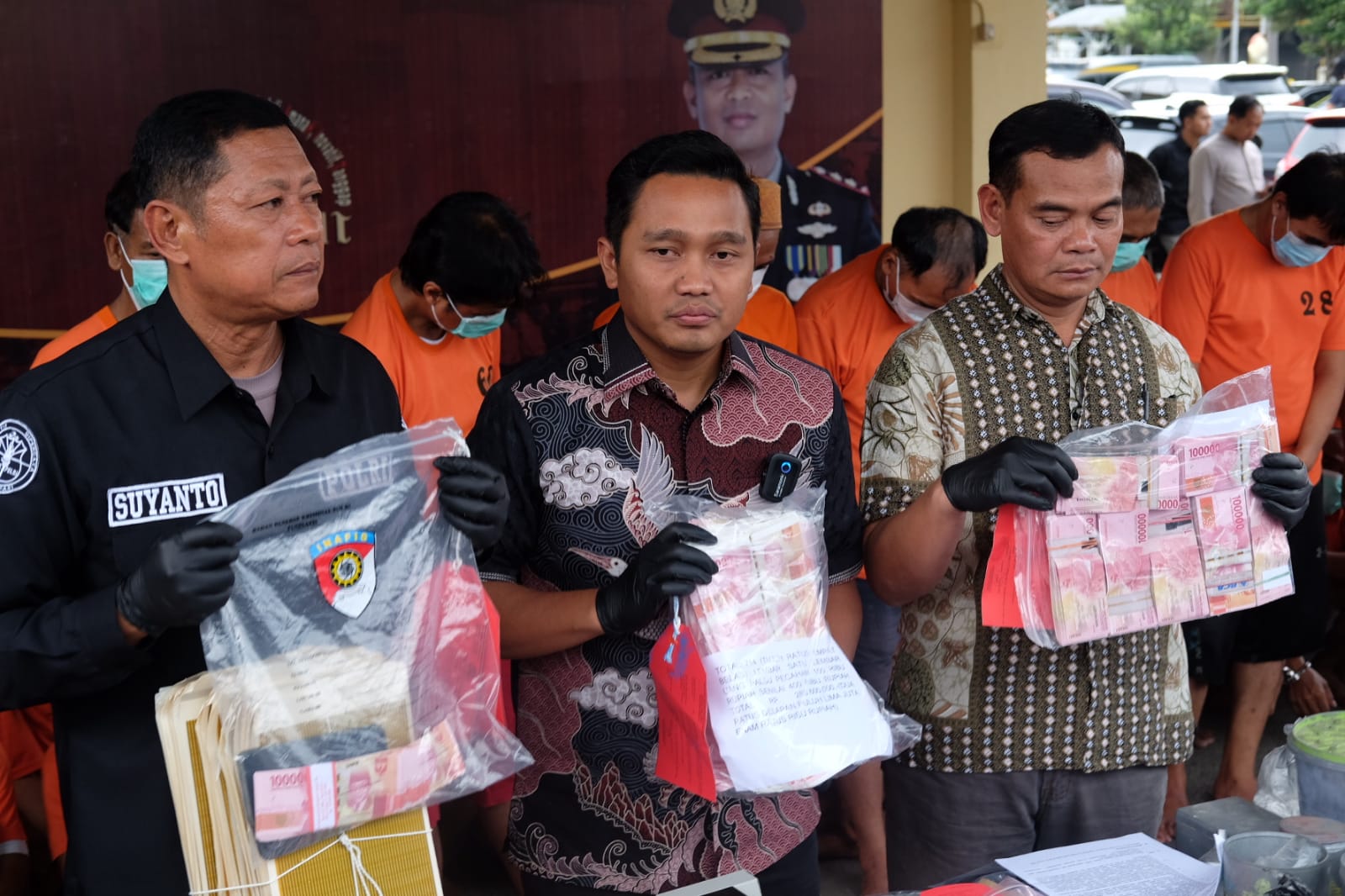 Komplotan 8 orang tersebut yaitu, Achmad Untung Wijaya (61), warga Desa Mojotengah, Bareng, Jombang, Siswadi (47) dan Utama Wijaya Ariefianto (50), warga Kelurahan Meri, Magersari, Kota Mojokerto dan Moh Fauzi (37), warga Desa Gunung Sereng, Kwanyar, Bangkalan. Juga Stanislaus Wijayadi (52) warga Desa Tirtonirmolo, Kasihan, Bantul, Yogyakarta; David Guntala alias Mbah Dul (46) warga Desa Ngingasrembyong, Sooko, Mojokerto; Mujianto (45) warga Kelurahan Tambaksawah, Waru, Sidoarjo; serta Hadi Mulyono (42) warga Kelurahan Sememi, Benowo, Surabaya.