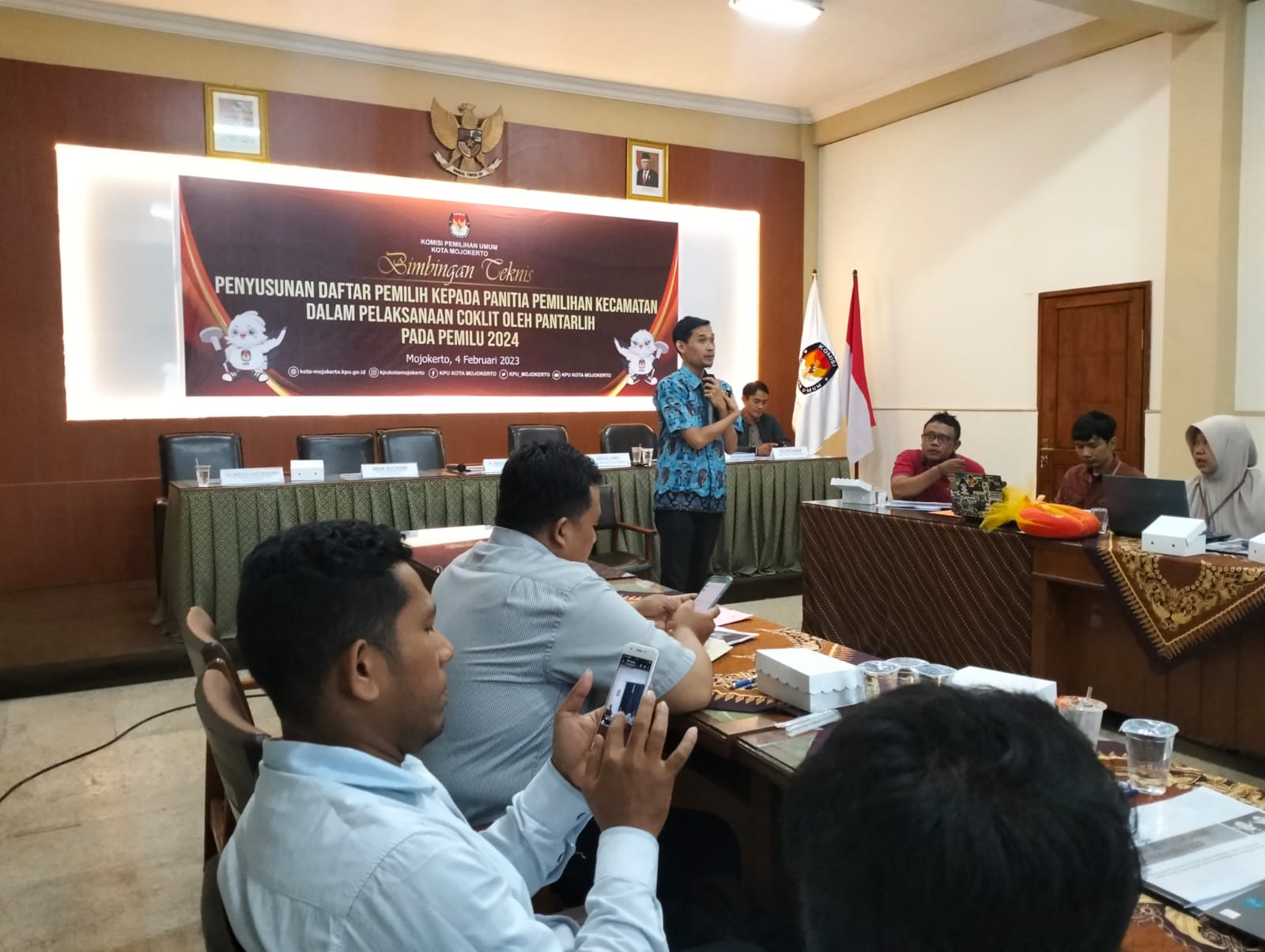 Tagarterkini.com, Mojokerto – Sebagai upaya persiapan tahapan Coklit, seluruh Panitia Pelaksanaan Kecamatan (PPK) mendapat Bimbingan Teknis (Bimtek) penyusunan daftar pemilih oleh Komisi Pemilihan Umum (KPU) Kota Mojokerto, Sabtu (4/2/2023) di Ruang Demokrasi Kantor KPU Kota Mojokerto.