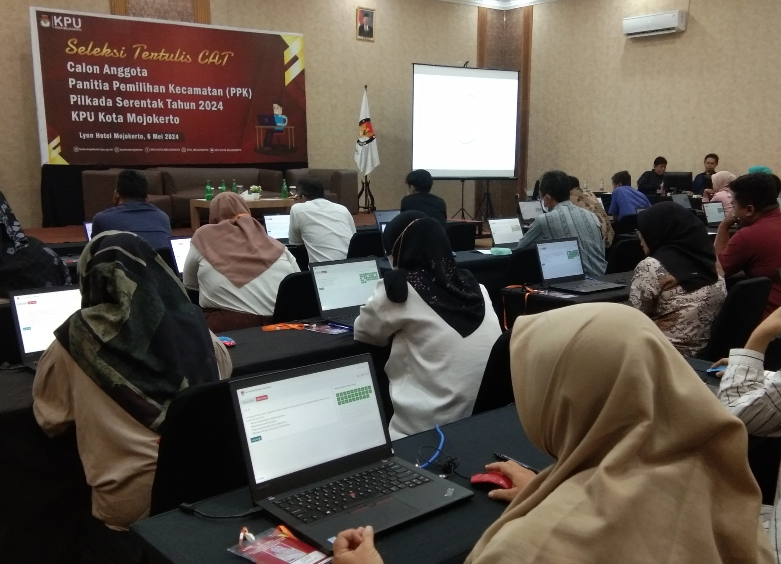 Tagarterkini.com, Mojokerto — Komisi Pemilihan Umum (KPU) Kota Mojokerto mengelar tes CAT (Computer Assisted Test) bagi 93 peserta calon anggota panitia pemilihan kecamatan (PPK) untuk pemilihan kepala daerah (pilkada) 2024, Senin (6/5/2024) di Hotel Lyyn.