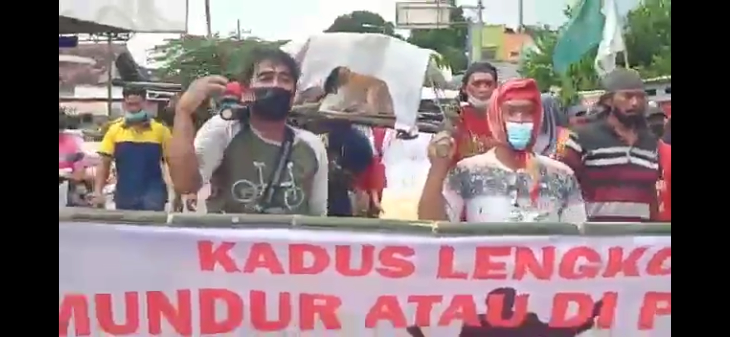 Dalam aksi tersebut tuga terlihat sejumlah poster tuntutan dari warga seperti ‘Jangan Bisniskan Tanah Fasum Makam Dusun Lengkong’ dan ‘Kepala Dusun Lengkong Harus Mundur Karena Tidak Dipercayai Lagi Oleh Warga Lengkong’.