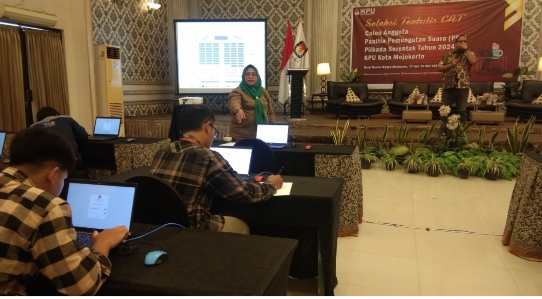 Tagarterkini.com, Mojokerto – Setelah lolos adminitrasi sebanyak 144 calon anggota Panitia Pemungutan Suara (PPS) mengikuti seleksi ujian Computer Assisted Test (CAT) yang digelar oleh Komisi Pemilihan Umum (KPU) kota Mojokerto, di Hotel Raden Wijaya, Jumat (17/5/2024). Dari ratusan peserta, hampir separo diisi oleh wajah baru.